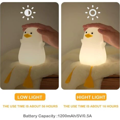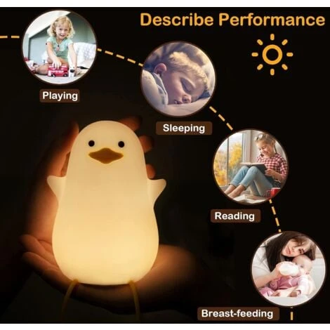 - Dimmable Lighting Mode: The kids night light has two lighting modes to meet your different needs. The duck lamp can accompany your children. The soft light mode is slightly bright, which can promote sleep and help breastfeeding. Powerful lighting mode can help you light up, read, etc.