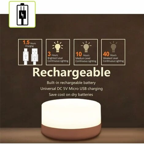 Neat design. – The upper middle concave design makes it easy to find or feel the touch sensor in the dark. – The flat cylindrical shape makes it stable and does not easily turn over and fall. – Magnetic base allowing lighting anywhere possible. – Small size and light, easy to use. to carry. – Manufactured made of quality ABS plastic and PC; superior, not easy to use to break. Smart One Touch for all operations. – Activ & oacute; to the touch, just press the button to turn on / off. – Hold light down for continuous variation, any brightness adjustable. – Brightness memory state-of-the-art, no need to adjust every time. Rechargeable for wireless lighting. – No need to replace the batteries with a built-in rechargeable battery. – & Eacute; save on dry batteries. – Safe, practical and wide compatibility Thanks to universal DC 5V micro USB charging. – Safer to touch children than other baby lamps directly connected to power – No more messy cables around you for portable wireless lighting. Best night companion. This rechargeable LED touch lamp is perfect on a table & agrave; diaper or a cradle as a breastfeeding nightlight or nightlight for breastfeeding the newborn; ; as a bedside night light for children and adults; suitable for bedroom, nursery, nursery, living room, or even as a camping lamp in a tent, decorative mood light. Features: – Operating temperature: -20 ℃ ~ 40 ℃. – Battery: built-in 500 mAh lithium polymer battery. – Charging: micro USB DC 5 V 500 mA input. – 70 lumens max. – Color temperature: neutral white 4000 K. – Product dimensions: 6.4 x 3.4 x 6.4 cm. – Product weight: 43.9 g. In a box. 1 mini touch light. 1 USB charging cable. 1 adhesive metal plate. 1 RTSU cable tie 1 user manual (English not guaranteed).