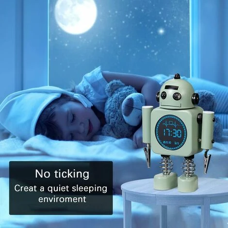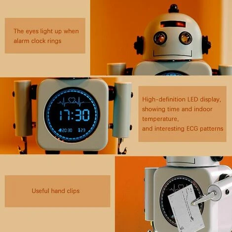ROBOT ALARM ALARM: This children’s alarm clock is unique and cute, it is the perfect gift for children or to decorate a room. The unique robotic arm swings up and down, and the clip arm can also hold post-it notes, photos or warm reminders for kids.