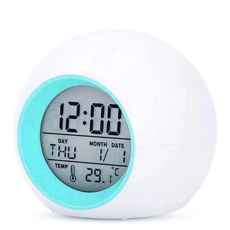3.【MULTIPLE FUNCTIONS WITH LED DISPLAY】: With a LED display our smart digital alarm clock shows time in both 12 & 24hr formats, date, temperature , alarm setting and timing function. Alarm clock for kids has 7 assorted coloured backlights making it visible in the dark and extremely useful as a nightlight.