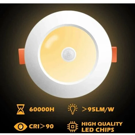 ăEnergy Savingă : Infrared human body induction ceiling lights save up to 82% of electricity bills. Replacing the 75W floor lamp with a 12W downlight provides exceptional light output for high ceilings.