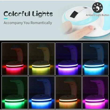 - AMBIENT LIGHT MODE – Press the Lamp ON/OFF button to gradually start the colorful mode. Seven different colors change freely in seconds, then click the button for a specific color (keep the color you like). On such a calm and warm night, the colorful lights accompany you for a romantic sleep.