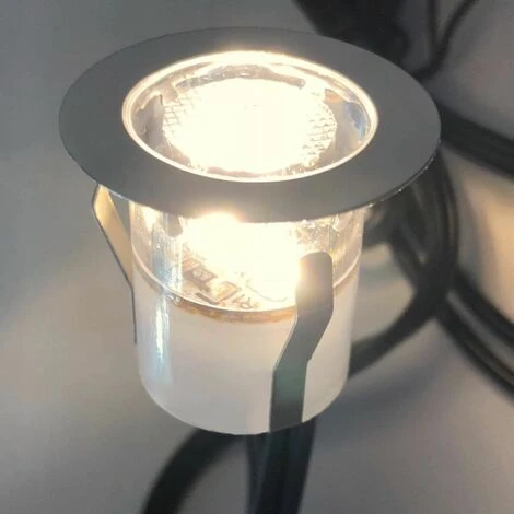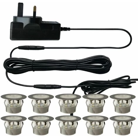 Set of 10 round waterproof and corrosion resistant polished stainless steel & polycarbonate heads with ultra bright warm white LEDs.