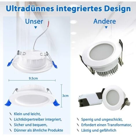 Recessed LED ceiling lights – set of 20 5W LED spotlights, hole size: 75mm – 95mm, installation depth: about 25mm, color temperature: 6000K, color: cool white