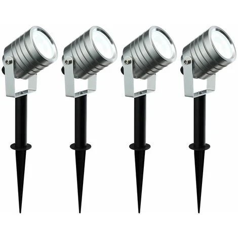 Set of 4 anodised aluminium LED outdoor adjustable spot spike lights with inline drivers