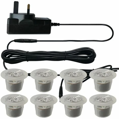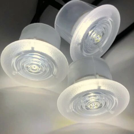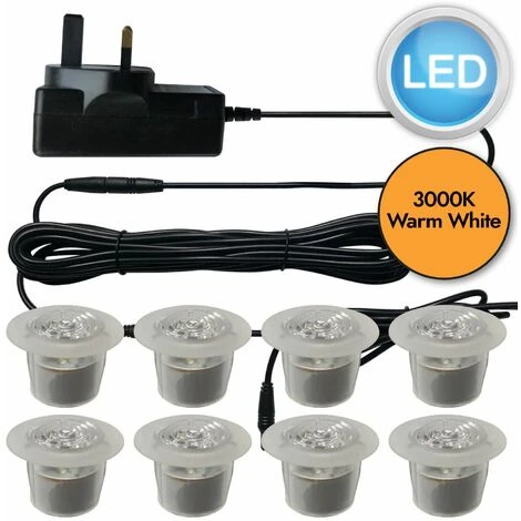 Set of 8 round waterproof and corrosion resistant polycarbonate heads with ultra bright warm white LEDs.