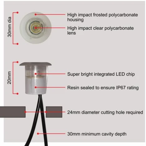 8 x IP67 LED lights, each with 55cm total cable to allow for connection in a daisy chain formation to ensure quick and easy installation