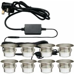 Set Of 8 – 30mm Polycarbonate IP67 Warm White LED Plinth Decking Kit