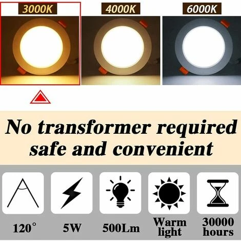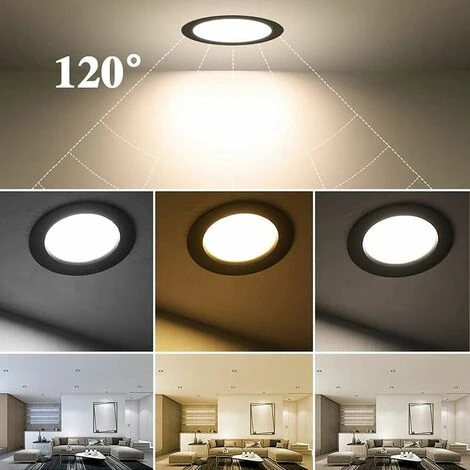 Warm light 3000K, power 7W, outer diameter 9.8cm, opening diameter 8-9.5cm, thickness 3cm,Material: Black recessed led spotlight are made of black pure aluminum alloy, with good heat dissipation, anti-corrosion and anti-oxidation. The lamp covered with acrylic plate, the light transmission effect is better than the other plastic plate.