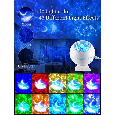 【Kids Projector:】The projector lamp can comfort your baby for him to fall asleep. Like a baby’s friend, the lamp accompanies him at night and passes the darkness. The projection lamp can also stimulate children’s imagination. See the projection of the waves, think of the ocean.