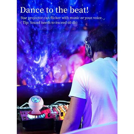 【Sound control projector】 The star sky lamp can read your favorite music via connected Bluetooth. Enjoy this moment of relaxation with your baby. Activate the voice control mode and the lamp will move to the rhythm of the music. The star, the clouds and the galaxy will sparkle rhythmically. Make you feel like you are in a karaoke or concert stage. The combination of lighting and music is an ideal choice for the gift.