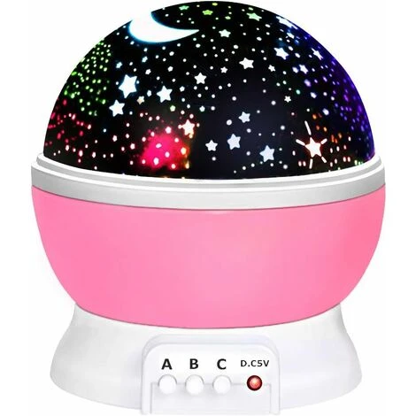 - 3 romantic lights 6 dreamy color modes: A key turns white main light on and off. Button B also turns on 3 colored lights blue, green and red. 6 color combinations are created. The C key rotates the lights in a circle around the room. You can teach your children about colors. Each time you press button B, the light will alternate between green, blue and red, then all three colors at the same time.