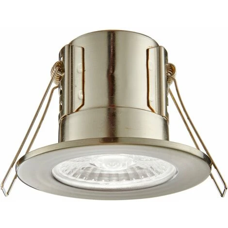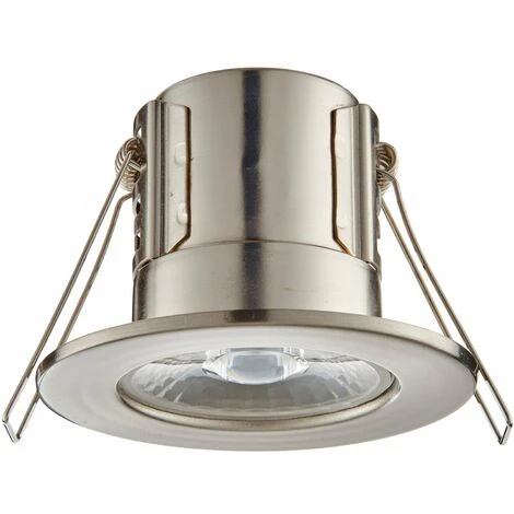 Ideal for domestic use, this everyday downlight has all the features you could require; fire rated, IP65 and dimmable. Tool-less and quick to install due to the 4 way push fit screwless terminal block. The 4W LED SMD module produces 500 lumens of cool white light from the anti-glare 60° lens. Slim profile with satin nickel finish.