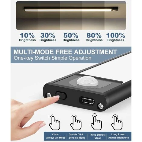 Humanized Design: Click normally on, Double-press induction mode, three clicks to turn off the light, and long press to adjust the brightnessBuilt-in rechargeable wireless lamp 31 LEDs neatly arranged, The lamp shell of cabinet is made of high quality aluminum + ABS, which is not rusty and easy to clean.