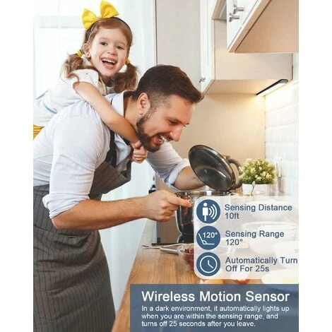 Sensitivity detection: Sensor cabinet lighting motion sensor.When a person is detected at night or in the dark, the detection light strip will be detected at a super wide angle of 120 degrees, and will automatically light up within the detection range of 3-5m, with a brightness of 25 seconds. No need to touch, safe and convenient.
