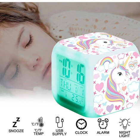 1.Unicorn bedside clock glows different LED lights colors changing, creates various atmosphere, kids will have a lot fun with this unicorn clock.