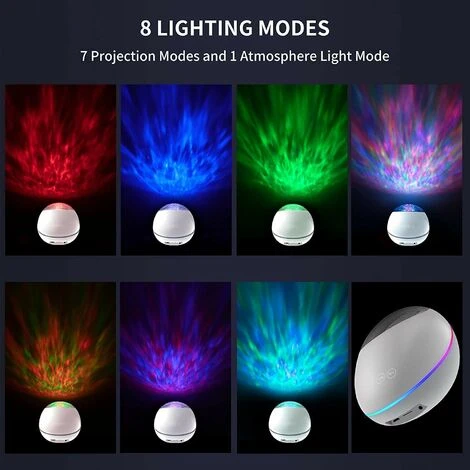 - 【Bluetooth 5.0 and 4 music play modes】 This ocean projector lamp supports 4 music play modes. This built-in lamp 8 soothing music, bluetooth 5.0 can also connect your bluetooth device as smartphone, iPad to play music. You can also enjoy music co.ukom TF card or audio cable. More choice for you.